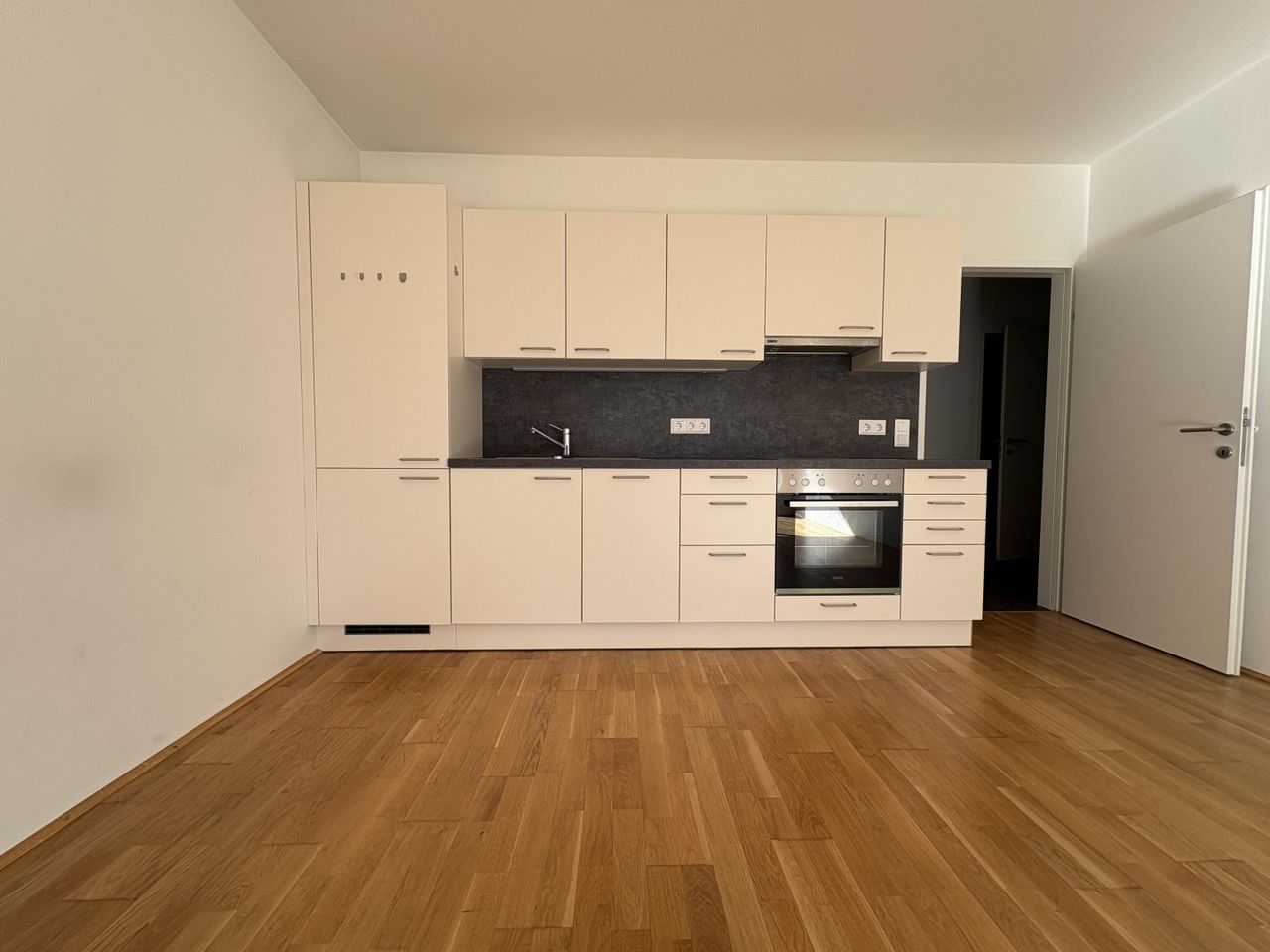Die Wohnung bietet einen großzügigen Wohn-Essbereich mit direktem Zugang zur gemütlichen Loggia, die zum Entspannen einlädt und zusätzlichen Wohnkomfort schafft. Die neuwertige, modern ausgestattete Küche fügt sich harmonisch in den Wohnraum ein und lässt keine Wünsche offen.