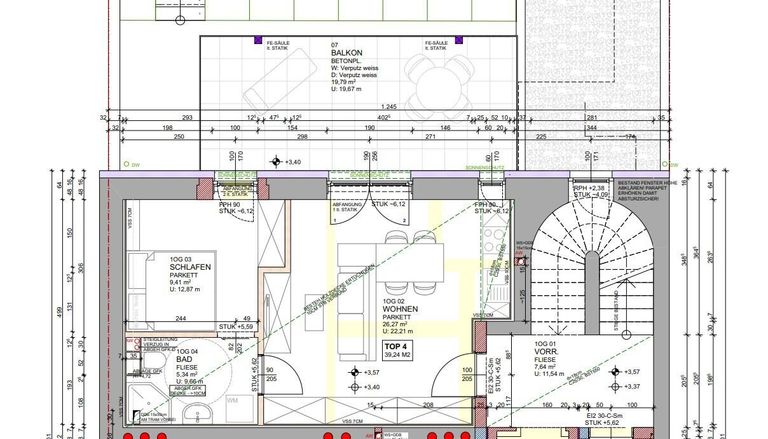 Ein besonderes Highlight ist der ca. 19,79m² große, südlich ausgerichtete Balkon, der direkt vom Wohn- und Essbereich aus zugänglich ist und zusätzlichen Wohnkomfort bietet.