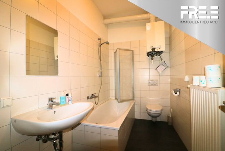 Im Badezimmer wartet eine Badewanne auf den Tagesausklang. Und mit dem kleinen Raum im zweiten Zimmer ist rasch auch noch ein Abstellraum geschaffen.