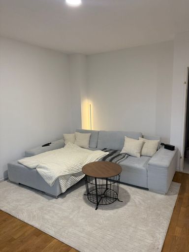 - Bodenbelag: Parkett in Wohn- und Schlafzimmer, Fliesen in Küche und Bad