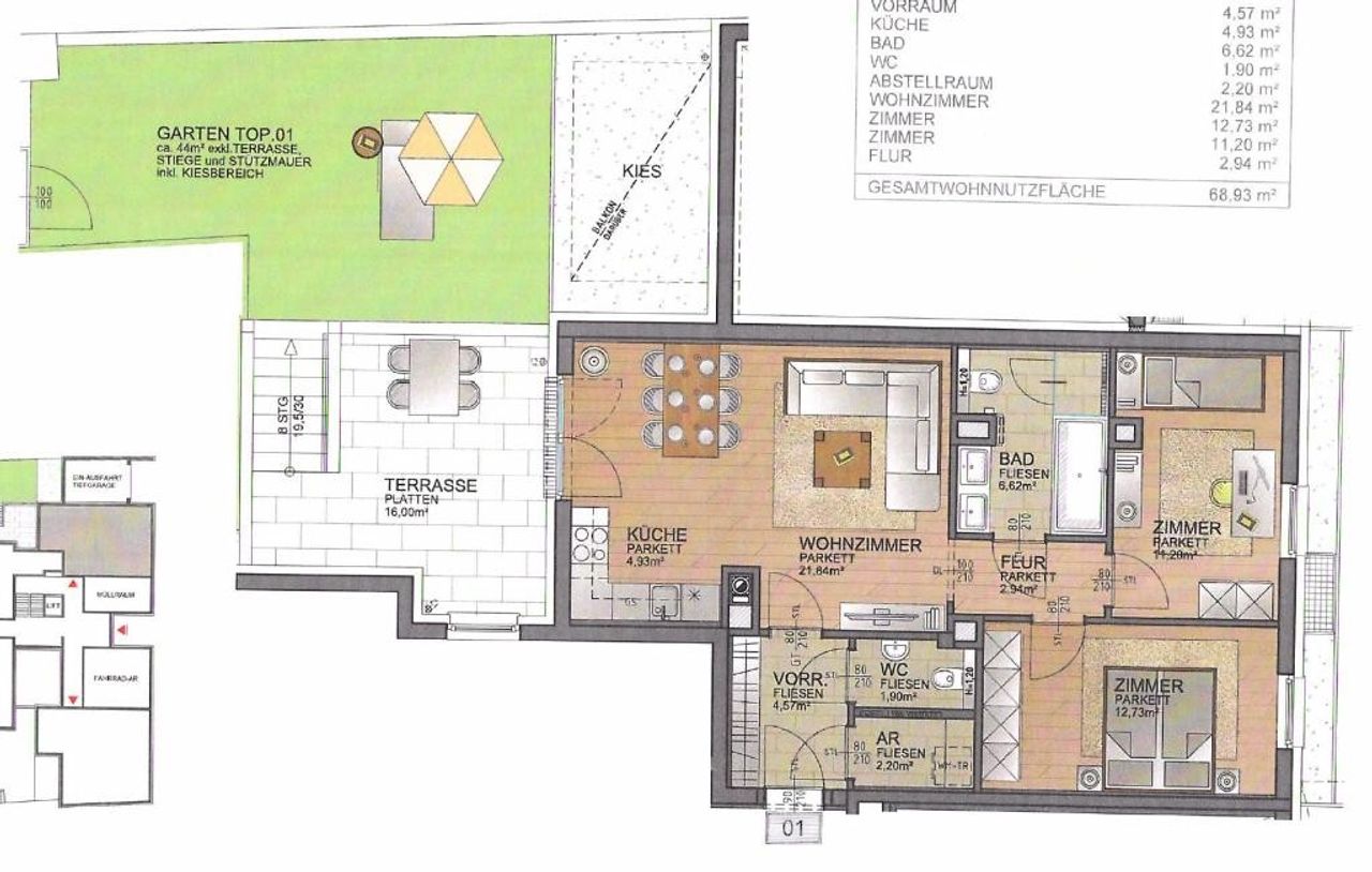 • Garagenplatz direkt im Haus (je nach Verfügbarkeit)