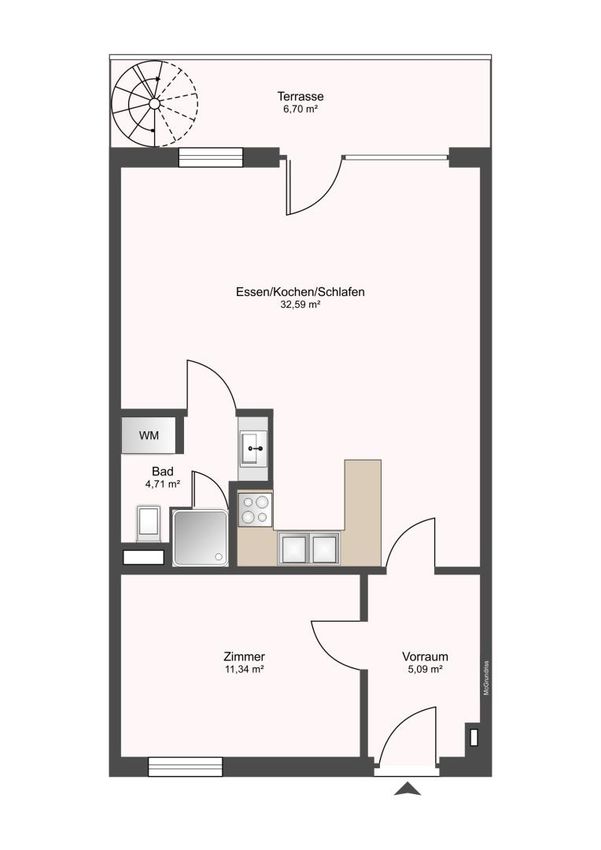 Hochwertige 2-Zimmer-Wohnung mit Dachterrasse und vielen Extras