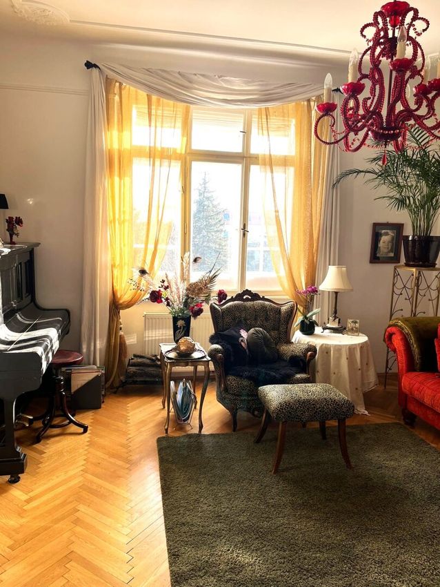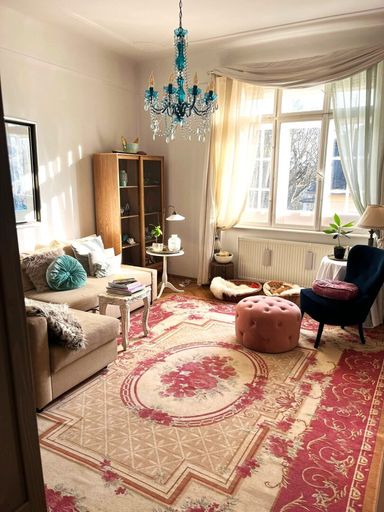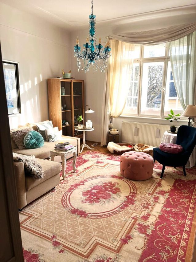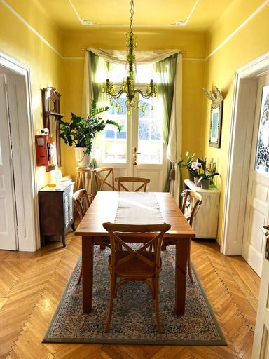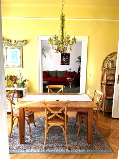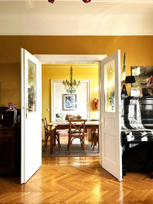 Diese Wohnung mit Balkon in einem historischen Bürgerhaus (1900) in Perchtoldsdorf bei Wien ist ein echtes Vintage-Highlight. Hier kommen Liebhaber einschlägiger Designs, Formen und Farben, insbesondere aus den 1960er und 70er Jahren aber auch jüngerer Zeit, voll auf ihre Rechnung. Diese Wohnung ist mit sorgfältig gesammelten und zusammengestellten Möbelexemplaren sowie Dekorationsgegenständen und Accessoires geschmackvoll abgestimmt eingerichtet sowie mit umfassendem Hausrat zur Nutzung ausgestattet. Ein Wohnen wie im Film.
