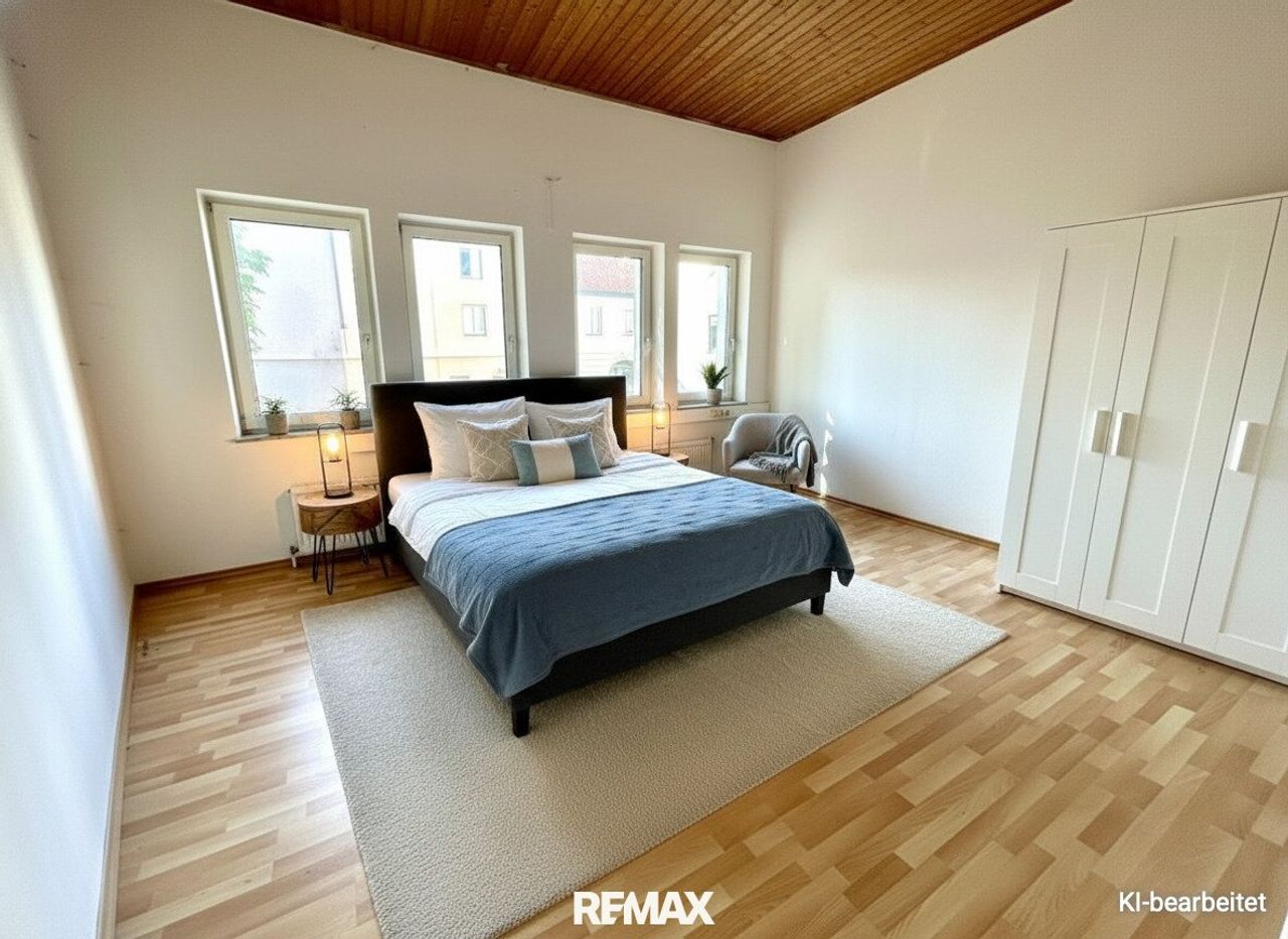 - ein sehr großes Schlafzimmer, das bei Bedarf auch geteilt und vielseitig genutzt werden kann