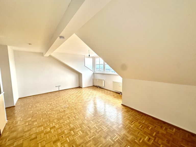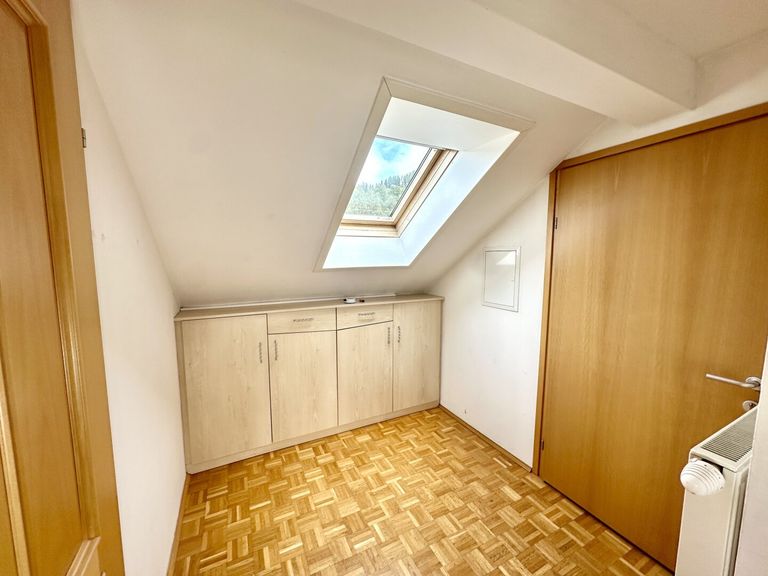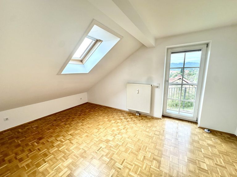 Die Wohnküche ist sehr geräumig, lichtdurchflutet und bietet durch die große Gaube eine wunderbare Aussicht über das Aichfeld. Von der Wohnküche gelangt man in die beiden Zimmer, welche über einen gemeinsamen kleinen Balkon verfügen.
