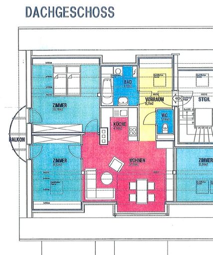 Die Wohnung befindet sich im 2.OG bzw. DG und präsentiert sich in sehr guten Zustand. Die Wohnung ist für Paare oder Kleinfamilien bestens geeignet.