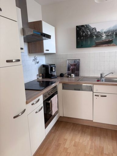 Die Küche ist separat und mit einer Einbauküche ausgestattet.