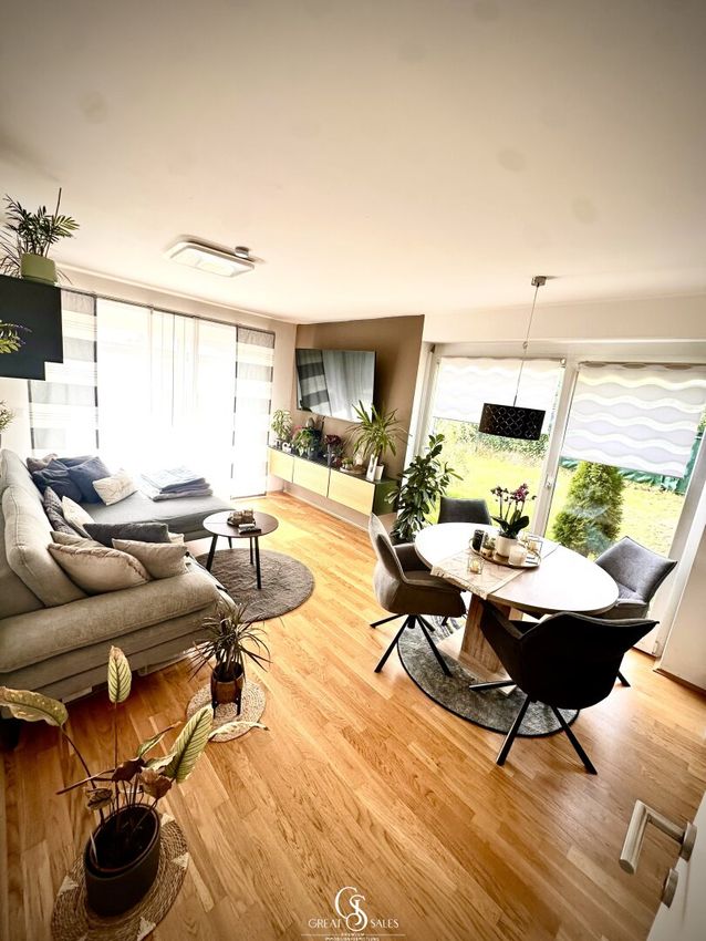 Sie zeichnet sich besonders durch große Fensterflächen, lichtdurchflutete Räume sowie einer optimalen Raumaufteilung aus. Ein absolutes Plus bietet zusätzlich die riesige, mit Feinsteinzeug verlegte und barrierefrei zugängliche Terrasse mit mit einem privaten Gartenanteil, welcher keine Wünsche offen lässt.