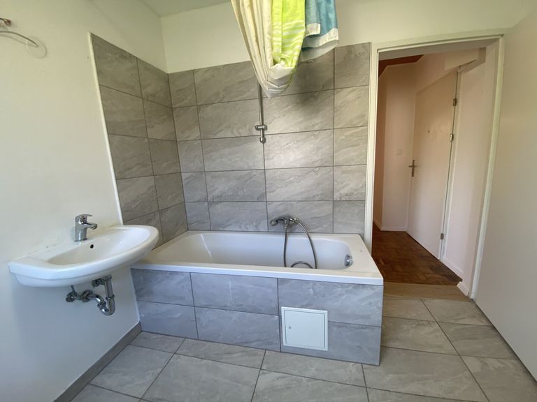 Die Wohnung ist wie folgt aufgeteilt: Vorraum, Wohnküche, Zimmer, Bad mit Badewanne und WC, Kellerabteil. Der Garten ist zur allgemeinen Nutzung bestimmt.