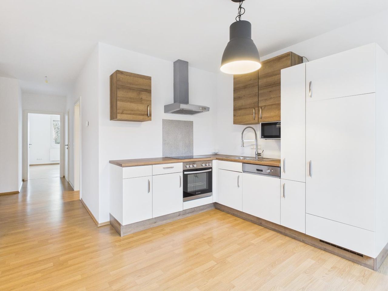 Zur Vermietung gelangt eine moderne Wohnung am ersten Stock in einem gepflegtem Mehrparteienhaus in Halbturn. Sie gliedert sich in eine Wohnküche, in ein Schlafzimmer, ein Badezimmer, in einen Abstellraum und in ein WC. Die Wohnfläche beträgt ca.56,78 m². Die Wohnung ist neu renoviert , verfügt über eine funktionale Einbauküche, ein Badezimmer mit Dusche und Handtuchtrockner, Rollläden sowie Fliesen und Laminatböden.
