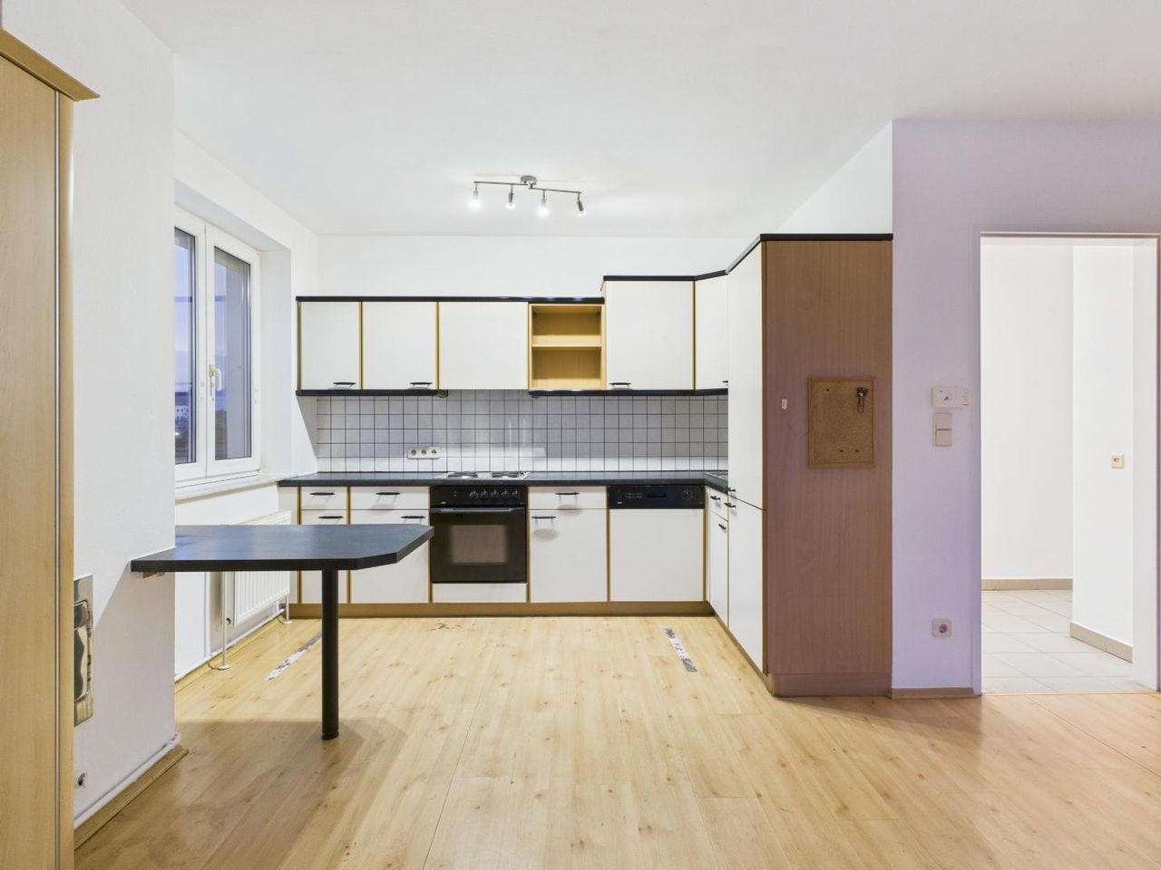 Sie eignet sich ideal für 1–2 Personen. Eine Küche mit Ess- und Wohnbereich, Schlafzimmer mit begehbarem Schrank, ein Badezimmer mit Badewanne und Waschmaschinenanschluss, WC sowie ein kleiner Balkon runden dieses Angebot ab.
