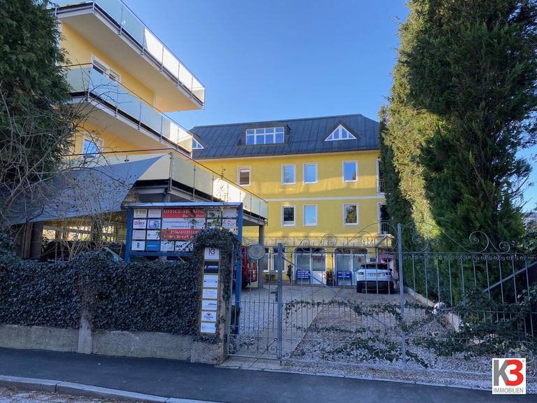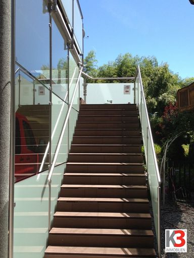 Vom PKW Stellplatz (in einem umzäunten Privatareal), wo sich auch eine E-Ladesäule befindet, gelangen sie über einen eigenen Zugang / Treppe in das 1.OG wo sich das "BÜRO & WOHNEN" befindet.