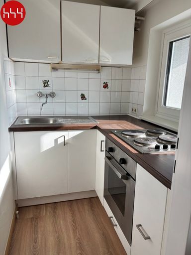 Die Küche bestehend aus einem Ceranfeld mit Backofen, einen Kühlschrank, Abwasch, Ober- und Unterschränken und wird neutral in weiß gehalten. Das Badezimmer ist durchgehend in weiß verfliest und ist mit einer Duschkabine, Waschbecken sowie einer Toilette ausgestattet. Der Wohn/Schlafraum kann sehr gut eingerichtet werden und hat durch die beiden Fenster sehr viel Tageslicht. Im Keller des Hauses befindet sich das zugeteilte Kellerabteil, welchen zusätzlichen Stauraum bietet.