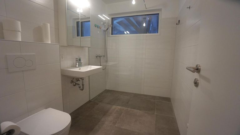 - Bad mit Dusche, WC und Waschbecken.