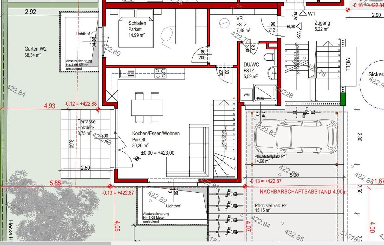 Zur Wohnung gehört ein zugeordneter Carportplatz.