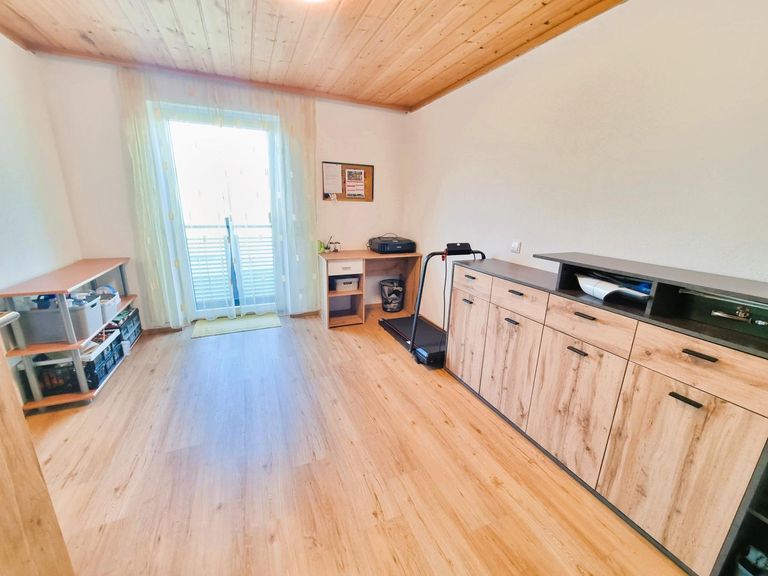 In Berndorf bei Salzburg, in ruhiger Lage bei einem Bauernhof und etwa 1 km außerhalb des Ortszentrums, befindet sich diese neuwertige 4-Zimmer-Maisonettewohnung mit eigenem Eingang. Im Eingangsbereich (1. Obergeschoss) befinden sich zwei Abstellräume, ein Schlafzimmer sowie ein Badezimmer mit Dusche, Badezimmermöbeln, Waschmaschinenanschluss und WC. Die Wohnküche ist mit einer modernen Einbauküche ausgestattet und bietet direkten Zugang zum Süd-Balkon, der zum Entspannen einlädt. Im Obergeschoss (Dachgeschoss) stehen zwei weitere Schlafzimmer zur Verfügung. Zur Wohnung gehören zudem zwei Autoabstellplätze sowie eine Kellerecke, die zusätzlichen Stauraum bietet. Bei Interesse kann auch ein eigener Gartenbereich genutzt werden. Die Beheizung erfolgt über eine umweltfreundliche Hackgut-Fußbodenheizung,...