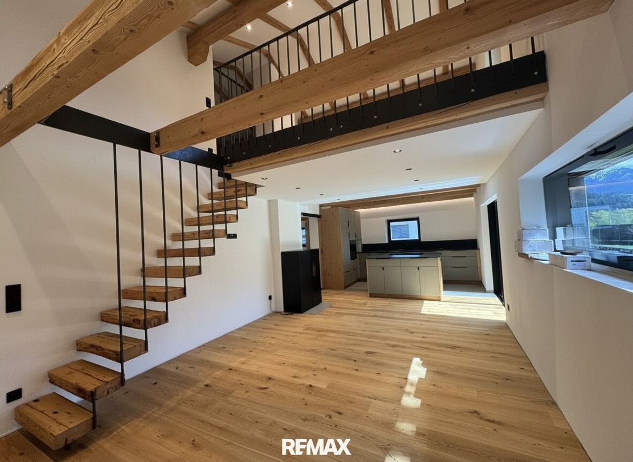 Ein echtes Highlight ist die stilvolle Galerie, die zusätzlichen Raum für Wohnen, Arbeiten oder Entspannen bietet und dem Objekt ein modernes Loft-Flair verleiht. Verbunden wird sie durch eine hochwertige Altholztreppe, die dem Wohnraum eine besondere, natürliche Note gibt.