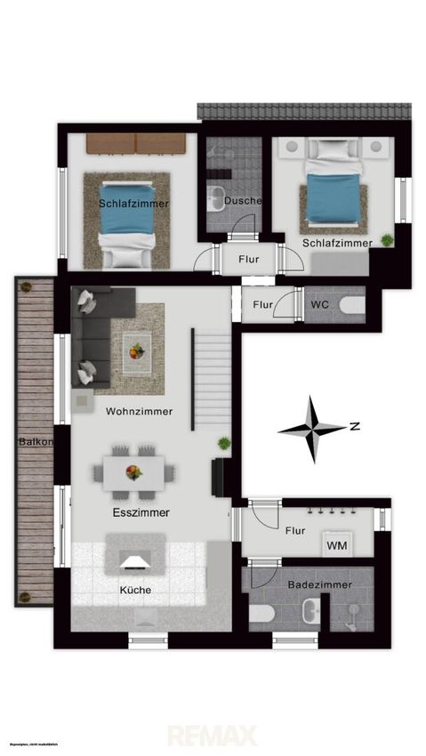 Mit insgesamt 3 Zimmern, zwei Badezimmern und zwei WCs bietet die Wohnung viel Platz und Flexibilität – ideal für Familien oder Paare, die sich ein schönes Zuhause schaffen möchten.