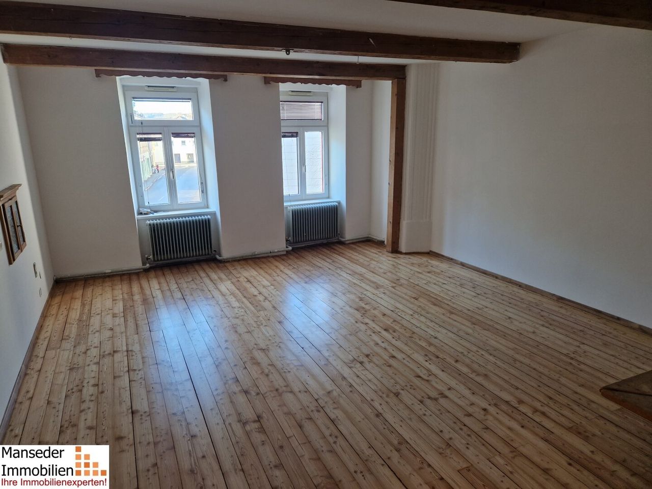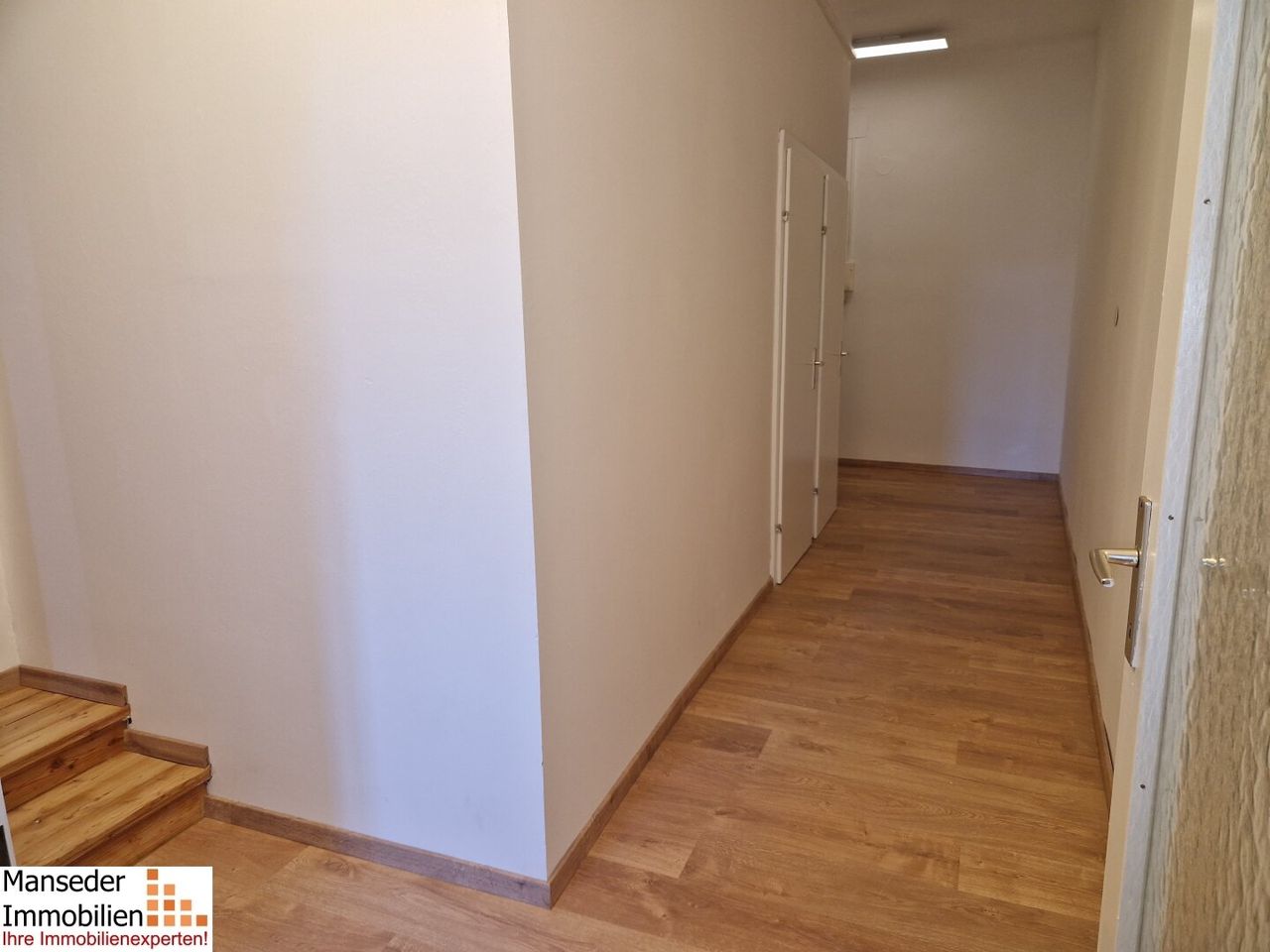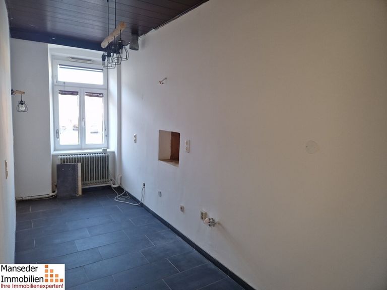 Neben dem Vorraum stehen ein großes Wohnzimmer, Küche, Badezimmer, WC und ein auf 2 Räume abgetrenntes Schlafzimmer zur Verfügung. Ein Küchenblock wird unter Abstimmung mit den neuen Mietern noch installiert.