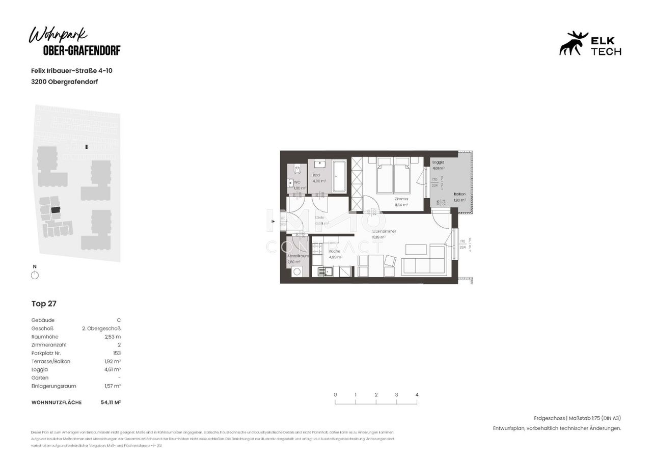 Die Wohnungen überzeugen mit modernen, zentral begehbaren Grundrissen und hochwertiger Ausstattung. Jede der Wohnungen verfügt über einen Außenbereich. Durch die versetzte Anordnung entstehen zwischen den Baukörpern weitläufige, begrünte Freiflächen, die als Erholungsraum dienen und ein nachbarschaftliches Miteinander begünstigen. Dank der Holzbauweise sind die Gebäude besonders stabil, energieeffizient und bieten ein behagliches Raumklima. Der Wohnpark Ober-Grafendorf ist klimaaktiv Gold zertifiziert und mit dem Energy Globe Award ausgezeichnet.