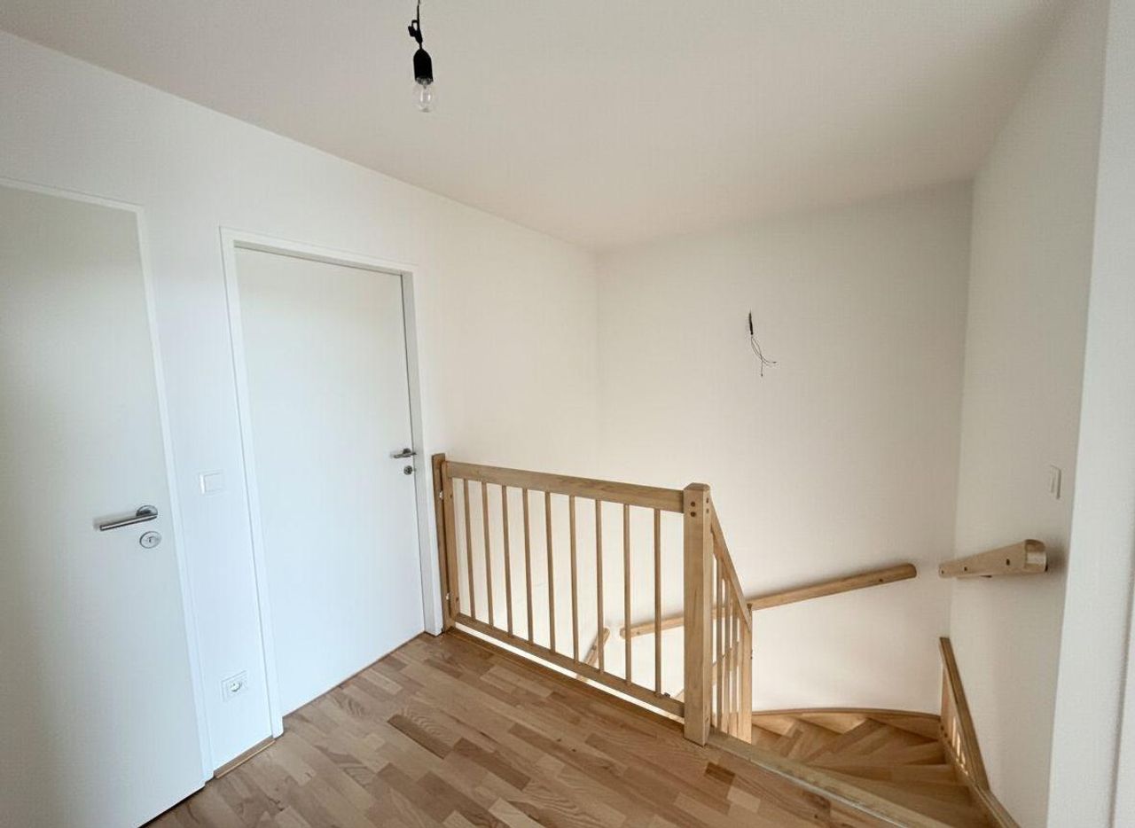 Helle 4-Zimmer-Maisonettewohnung im 1. OG! Die top ausgestattete Wohnung mit ca. 87,04 m² Wohnfläche und einem Balkon mit ca. 9m², teilt sich auf 2 Ebenen auf! Im 1. Geschoß befinden sich ein Vorzimmer, ein separates WC, ein Abstellraum und eine geräumige Wohn-/Essküche, von der man direkt auf die herrlichen Balkon gelangen kann. Über die Holztreppe im Wohnzimmer (ein Blickfang) erreicht man das Dachgeschoß. Hier befinden sich 3 Schlafzimmer, ein Vorraum, ein Abstellraum und ein Badezimmer mit Badewanne (Fenster). Ausstattung: Alle Wohnräume sind mit Parkettböden oder Fliesenboden ausgestattet 1.Stock ohne Lift Haustiere erlaubt Heizung: Fernwärme 2 PKW Abstellplätze Monatliche Miete beträgt...