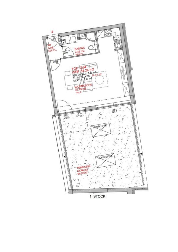34,24 m² Wohnfläche + ca. 37 m² Terrasse