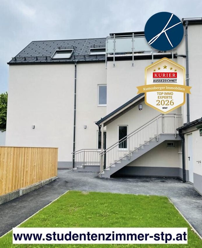 English version below! Studentenzimmer mit Garten oder Dachterrasse Aquilin Hacker-Straße 65 (Nähe New Design University sowie das WIFI St. Pölten) Zwölf WG-Zimmer in 3 verschiedenen WGs in St. Pölten-Spratzern in der Aquilin Hacker-Straße 65 zu vergeben. Alle WGs sind komplett neu saniert und voll möbliert. Moderne Bäder, Waschmaschine, Küchengeräte - alles vorhanden! Ruhig gelegene Studenten-Zimmer zwischen 13 und 23m² in neu sanierten WGs im Süden von St. Pölten (Spratzern) zu vergeben! Weitere Räume in den WGs zur gemeinsamen Benützung: Vorraum, Küche mit Essplatz, Badezimmer mit Dusche und Waschmaschine sowie separates WC. Pro WG verfügt eines der Zimmer über ein eigenes...