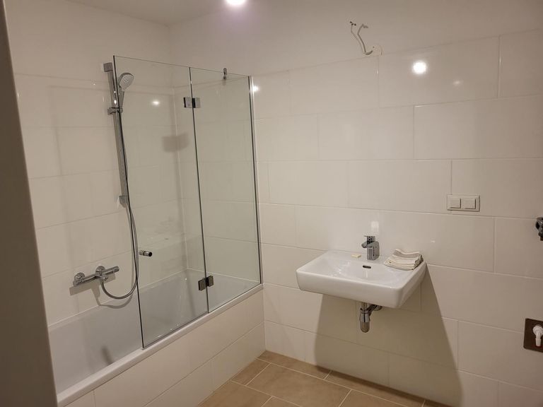 Die helle, freundliche Wohnung is mit Echtholz-Parkettböden ausgestattet, hat eineFußbodenheizung und ein schön ausgestattetes Bad mit Fliesen und hochwertigem Feinsteinzeug. Französische Fenster mit 3- fach Verglasung aus Alu Kunstoff mit funkbetriebenen Sonnenschutz sorgen für eine angenehme Atmosphäre.