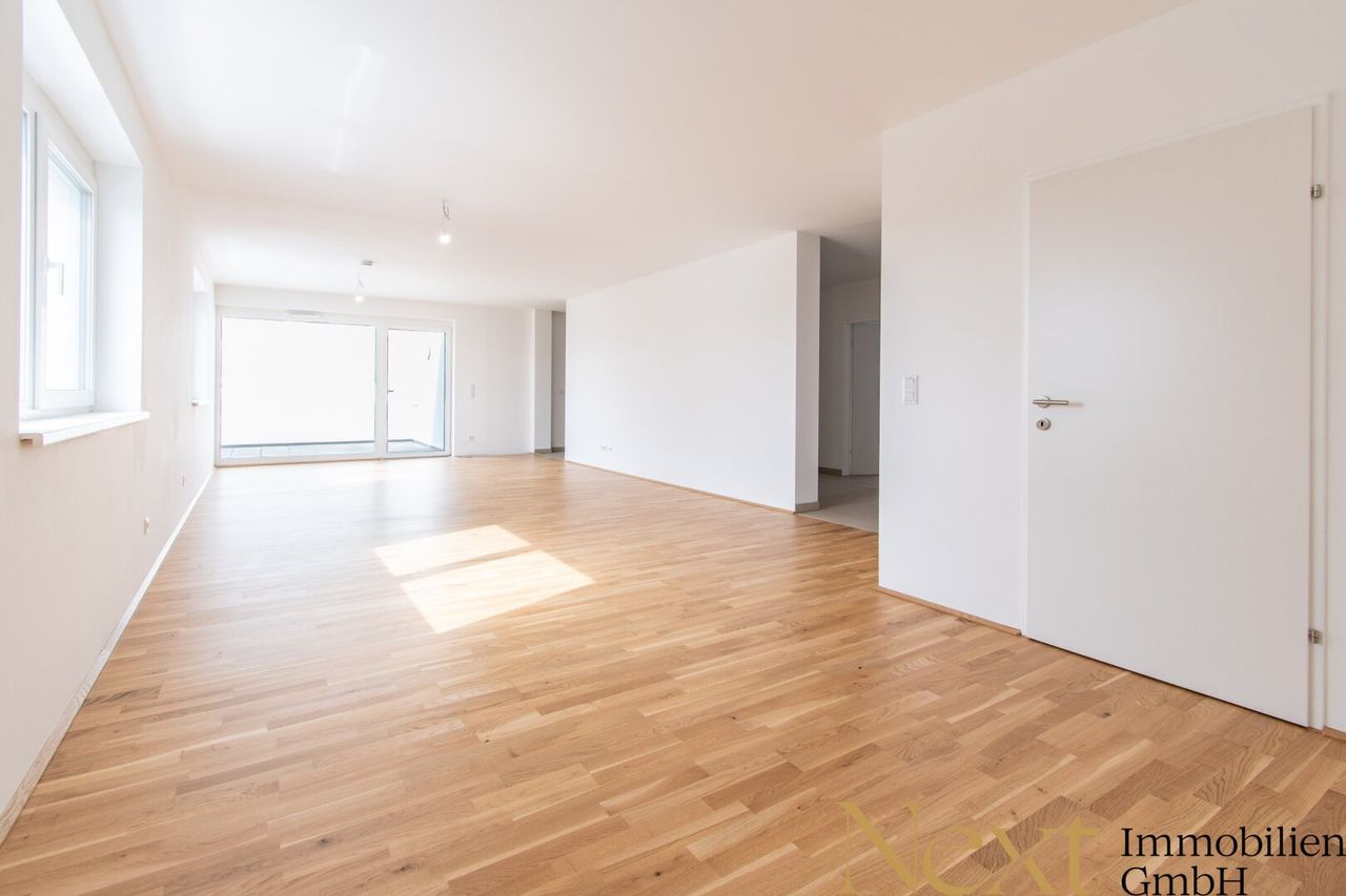 MIETE MIT KAUFOPTION - TEILZAHLUNG Finanzierungsbeitrag möglich! Erstklassige Neubauwohnung in Ruhelage samt Terrasse in St. Pölten! Diese attraktive 4-Zimmer-Wohnung mit ca. 116,73m² Wohnnutzfläche befindet sich im 2. Obergeschoß eines Wohnhauses in zentraler Lage von St. Pölten. Sie ist barrierefrei zugänglich und überzeugt durch eine durchdachte Raumaufteilung. Der lichtdurchflutete Wohn-, Ess- und Kochbereich führt auf die südseitig ausgerichtete Terrasse. Vom zentralen Vorraum aus sind alle drei Schlafzimmer, Badezimmer, separate Toilette und ein Abstellraum begehbar. Das Badezimmer verfügt über Badewanne, Dusche, Doppelwaschbecken und Waschmaschinenanschluss. Alle Wohn- und Schlafräume der Wohnung verfügen über einen hochwertigen Parkettboden. Im Abstellraum sowie Badezimmer und WC wurden...