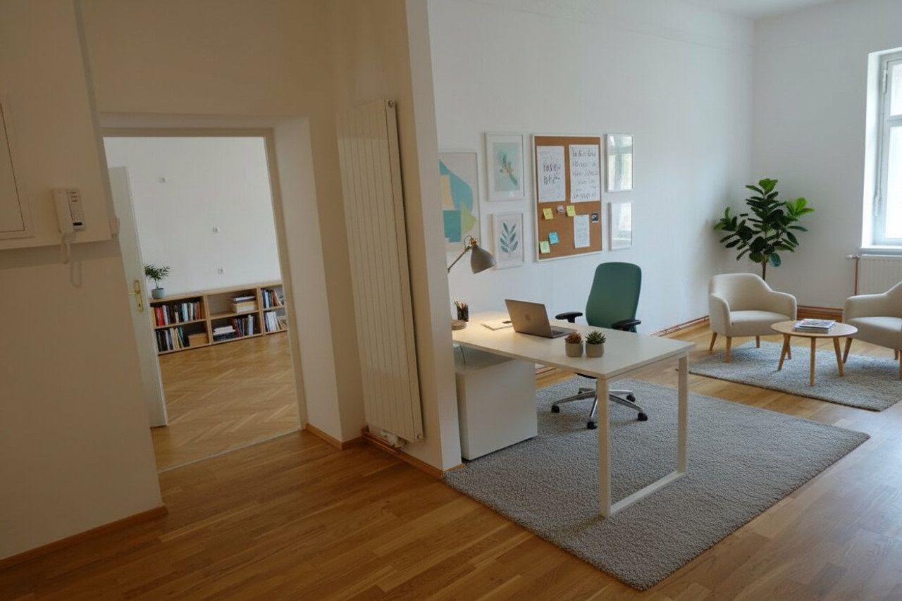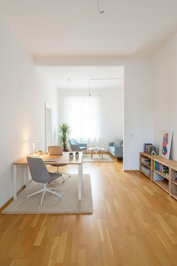 HINWEIS: Die Einrichtung der Bilder wurde generiert, die Wohnung ist ohne Einrichtung und Küche zu mieten!