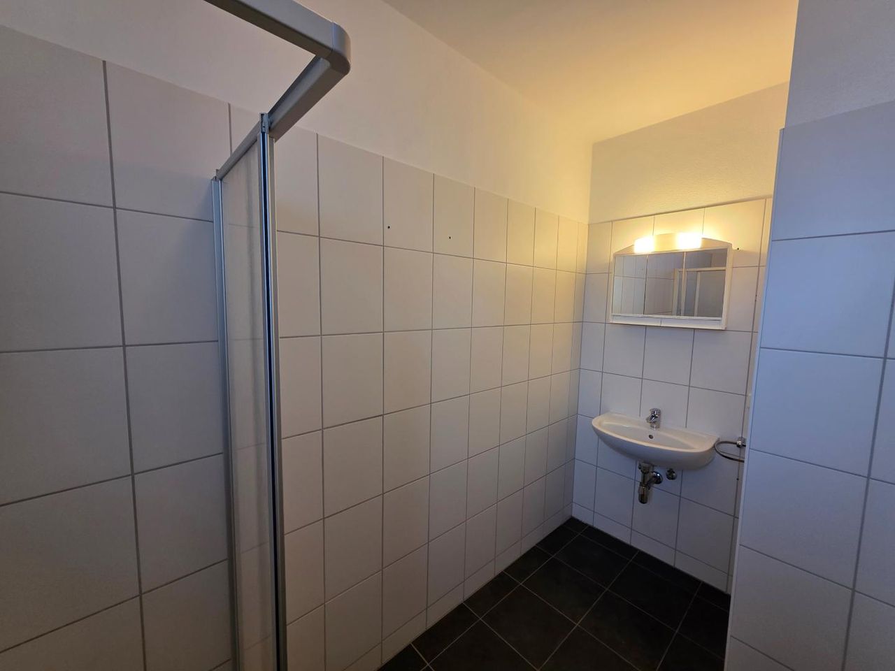 Das Badezimmer verfügt über eine Dusche und ein WC und ist modern gestaltet.