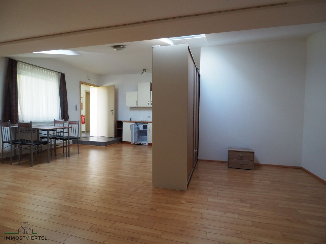 * Die Wohnung befindet sich im 1 Stock ( Dachgeschoß) eines Mehrparteienhauses und besteht aus einem Wohn-Esszimmer mit integrierter Kochecke sowie Schlafbereich und einem Bad mit Dusche und WC