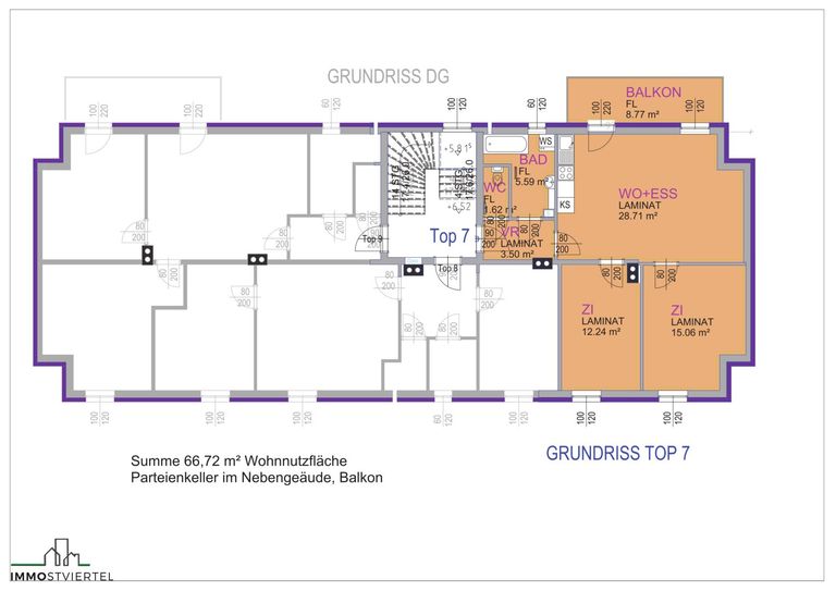 * Wohnfläche: 66,72m² plus ca. 8,7m² Balkon