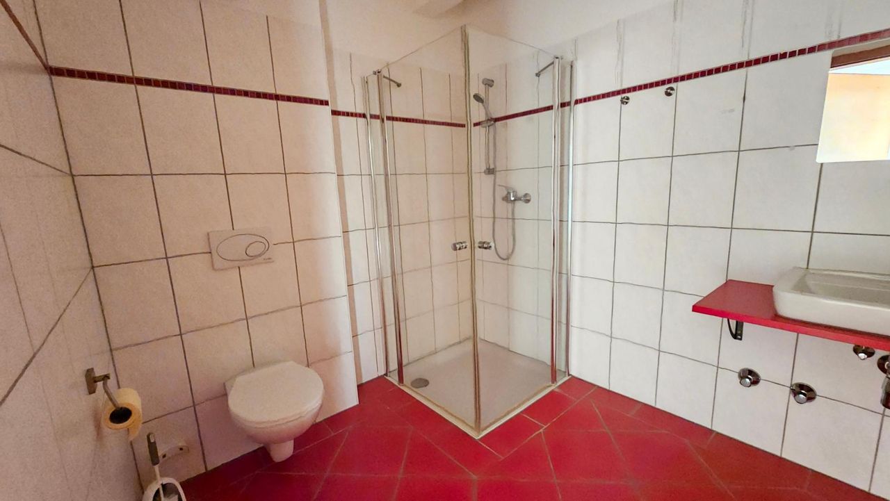 Im Bad ist eine eben begehbare Dusche verbaut.
