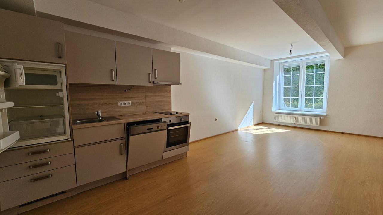 Ab sofort kann diese gemütliche Erdgeschoßwohnung mit einem Schlafzimmer und möblierter Küche gemietet werden.