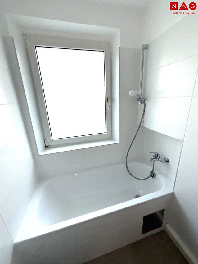 - komplett saniertes Badezimmer mit Badewanne, Fenster, WC und ausreichend Platz für eine Waschmaschine