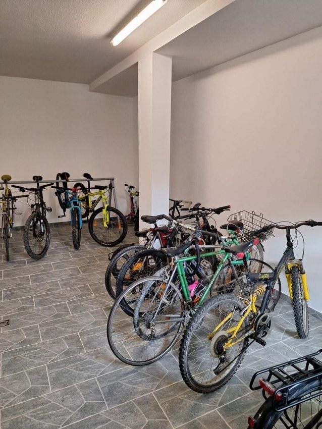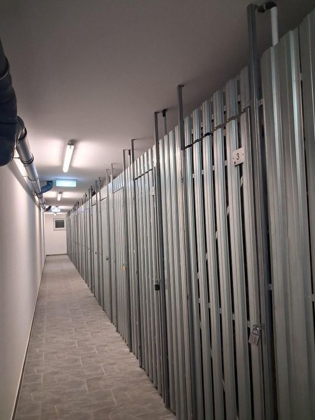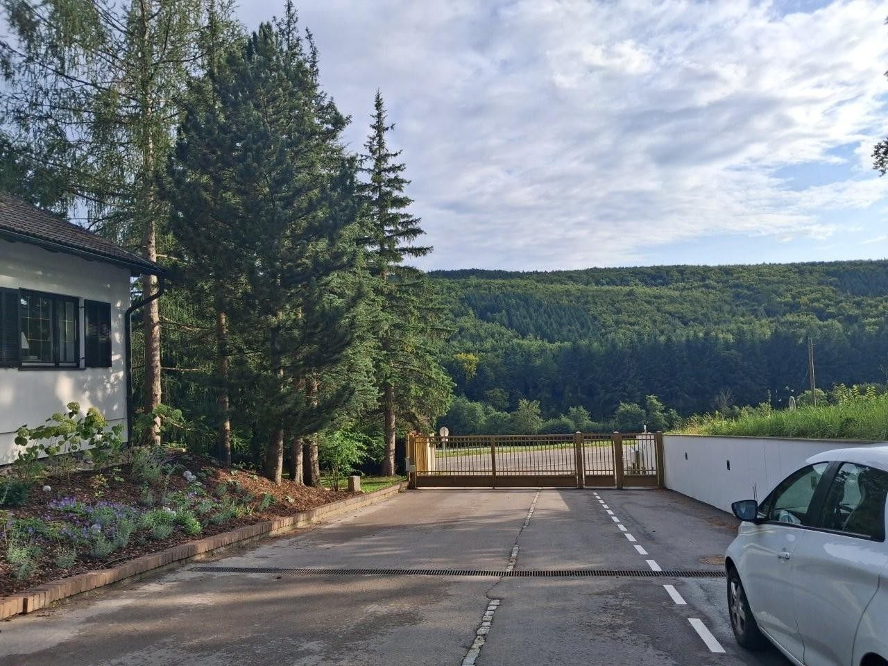 Man kommt die Einfahrt bequem mit dem Auto beim vollautomatischen Einfahrtstor hinauf und parkt in der Tiefgarage auf einem eigenem Parkplatz, der 98,- € mon. kostet.