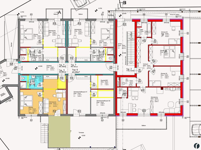 Wohnung ca. 43 m², Terrasse ca. 21 m², Kellerabteil ca. 5,44 m²