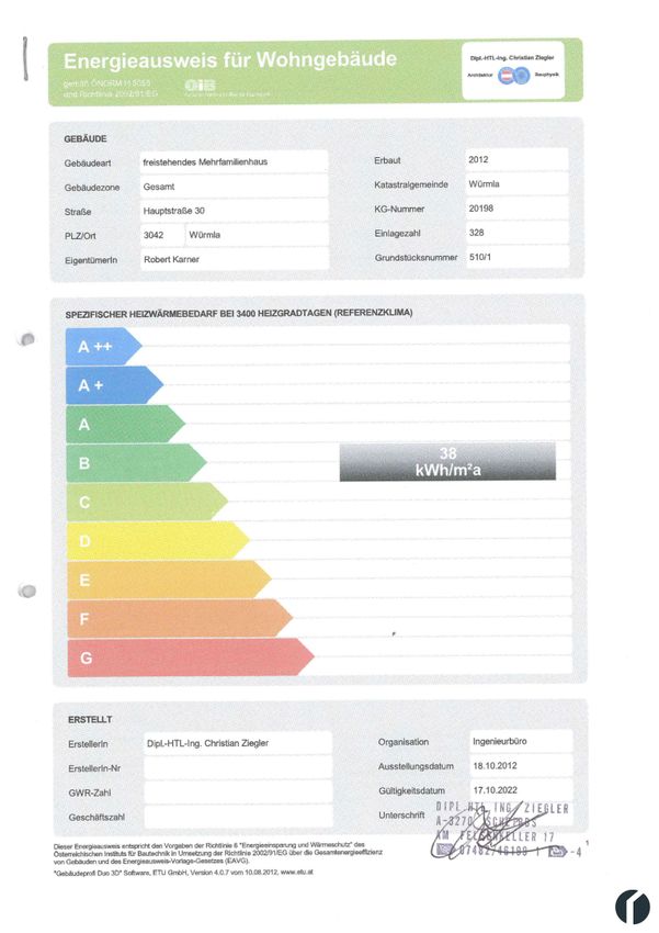 Das Gebäude wurde 2012 neu barrierefrei mit Lift und Rampe errichtet, damit ist auch betreubares Wohnen möglich. Jede Wohnung wurde unter anderem ausgestattet mit einer kontrollierten Wohnraumlüftung sowie einer Fußbodenheizung über eine Luft-Wärmepumpe. Die Kosten für Strom verrechnen Sie direkt mit einem Energieanbieter Ihrer Wahl.
