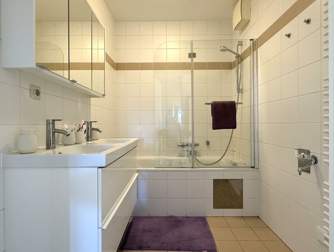 Das Bad zeitlos weiß, dafür mit Wanne – kein Schnickschnack, sondern einfach funktional und sauber. Dazu gibt’s zwei separate WCs, die im Alltag mehr Komfort bringen, als man vermutet.