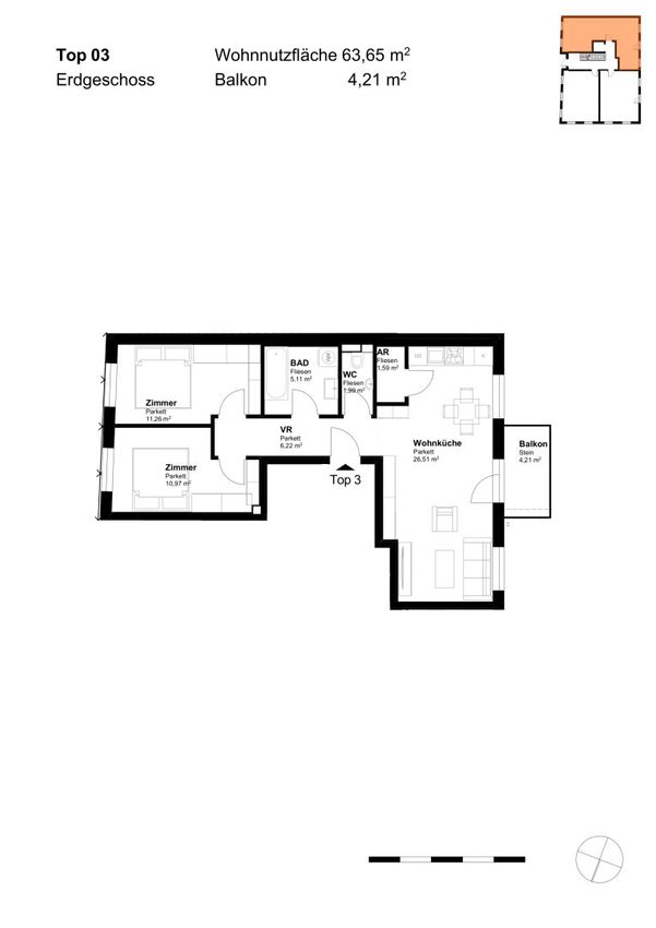 Die hier angebotene Wohnung Top 3, befindet sich im erhöhten Erdgeschoss und ist hofseitig ausgerichtet. Man hat somit einen traumhaften Blick ins Grüne sowie...
