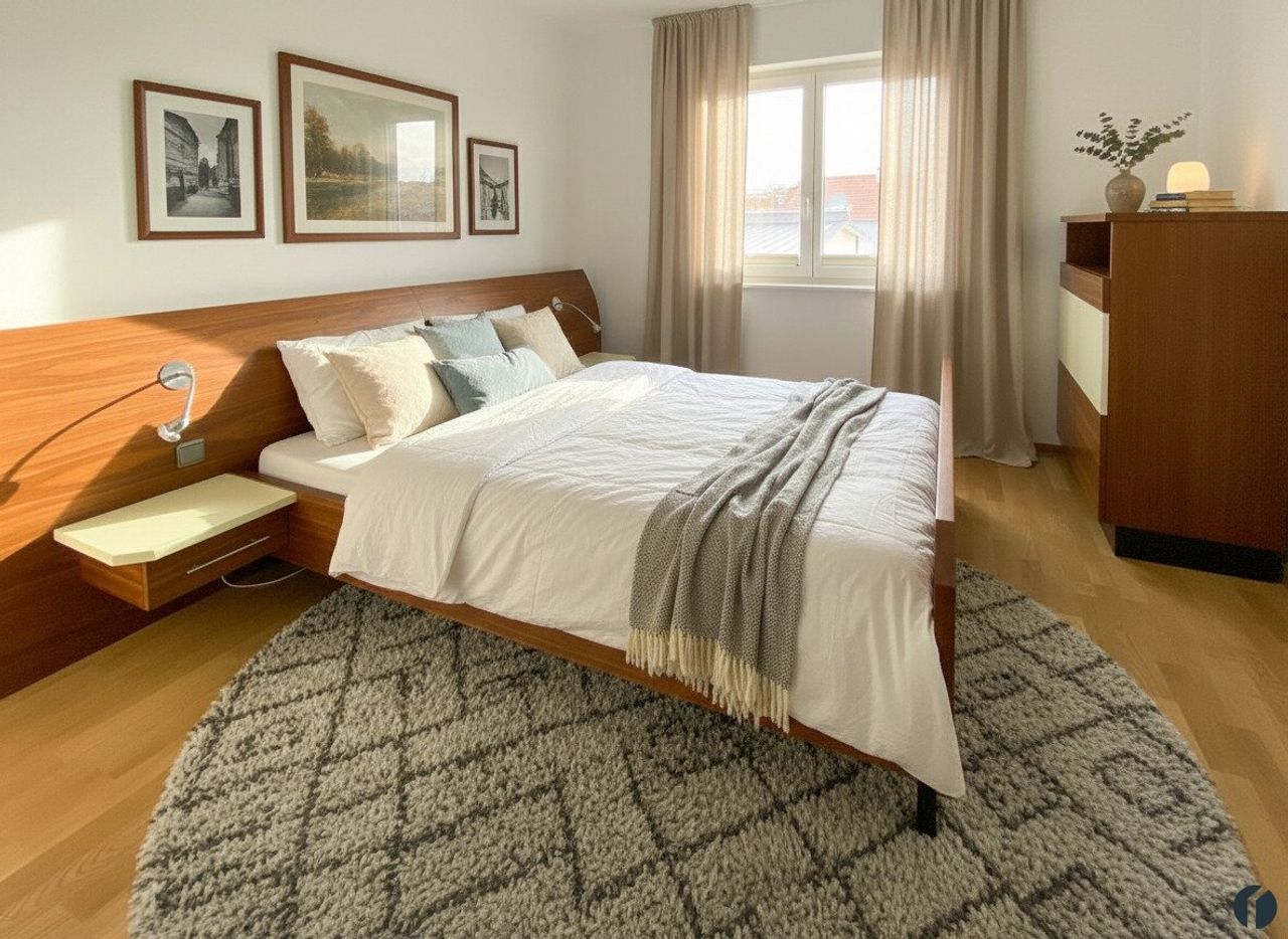 Die beiden Schlafzimmer sind bereits mit Bett und Schränken möbliert. Im ebenfalls top-ausgestatteten Badezimmer gibt es eine große Walk-in Dusche und schöne Einbaumöbel,...