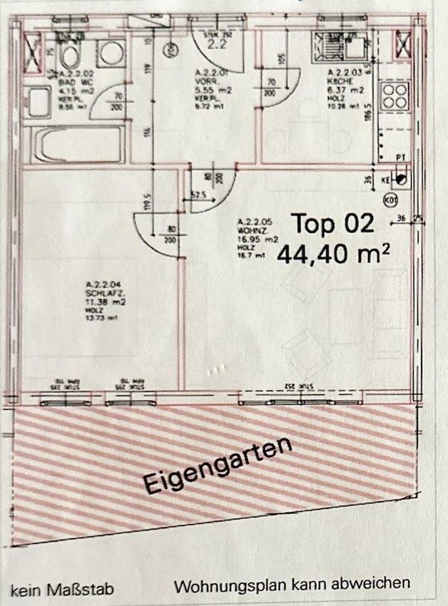 LINZ / URFAHR (PLESCHING): Perfekt aufgeteilte WOHNUNG mit ca. 44,4 m² Wohnfläche + Eigengarten ca. 28,7 m² + Parkplatz in der Tiefgarage