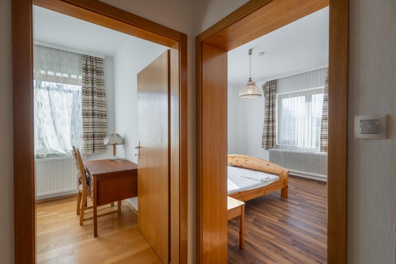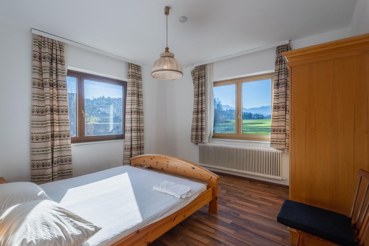 * Wohnzimmer mit Ostbalkon, Schlafzimmer westlich ausgerichtet mit großem Fenster und Blick auf Berge, Wiesen und Wald