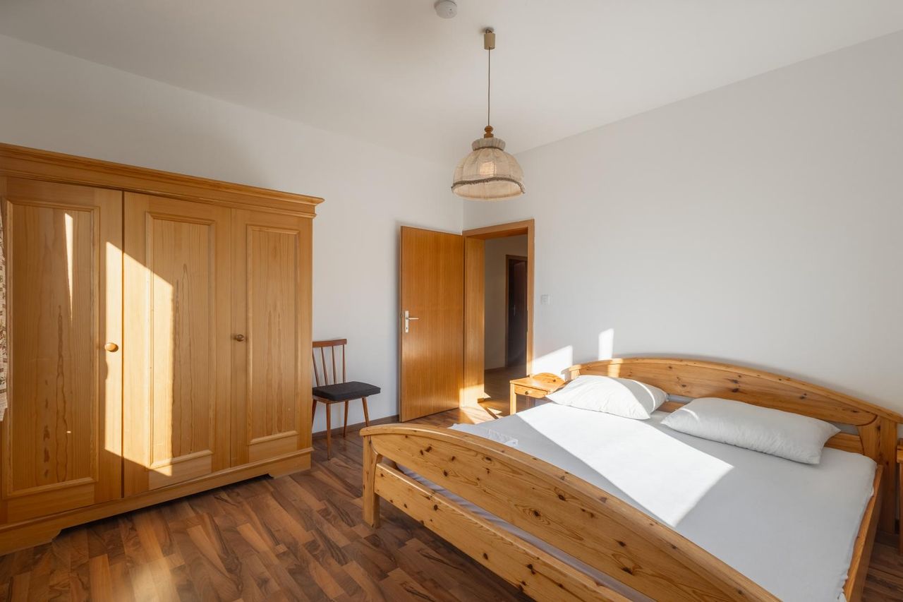 * 5 helle Zimmer: 3 Schlafzimmer, Wohnzimmer, Esszimmer mit Kachelofen