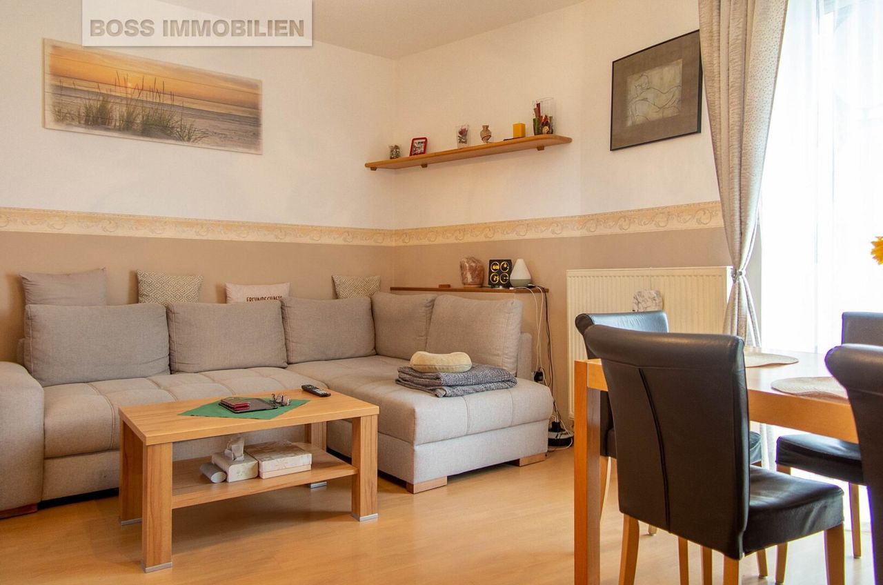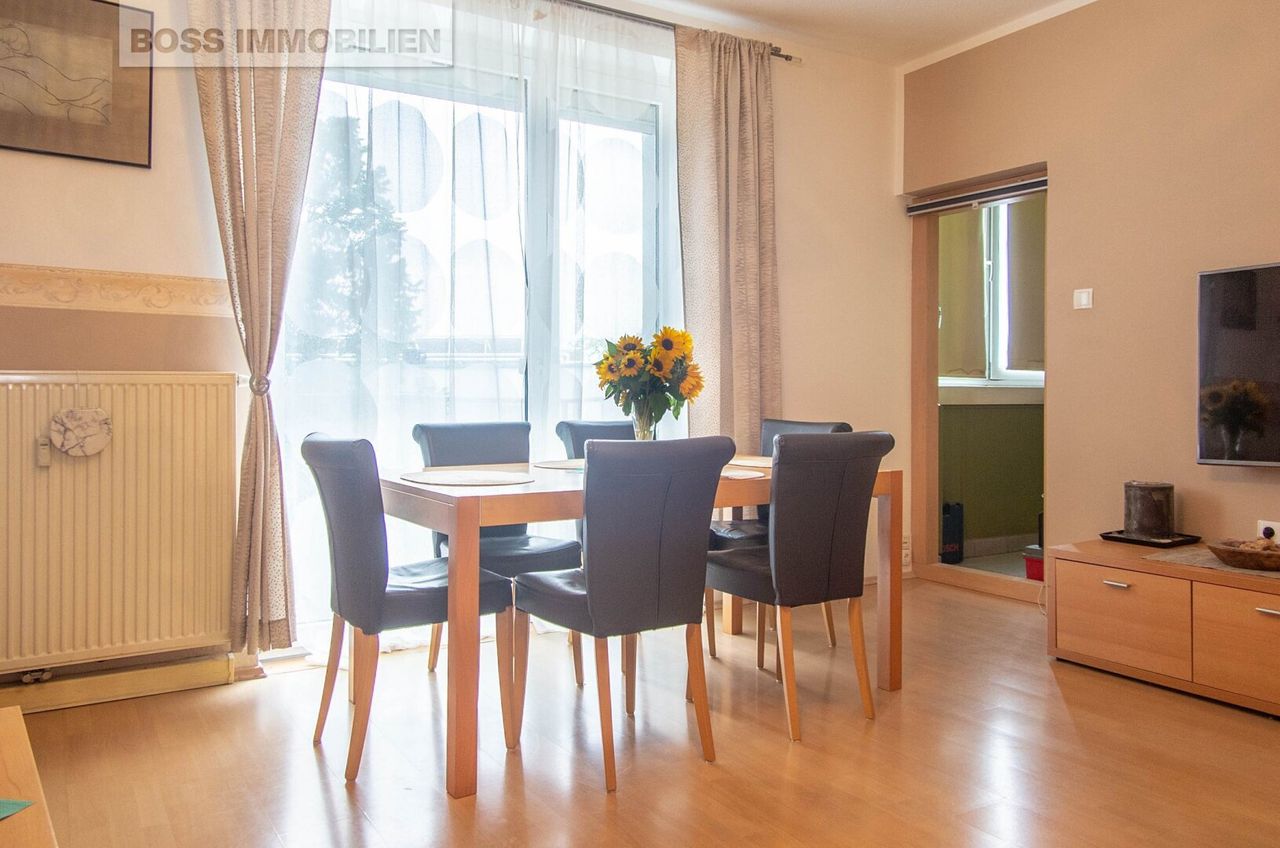 Der durchdachte Grundriss überzeugt: Ein großzügiges Wohnzimmer mit Essbereich und direktem Zugang zu Loggia und Balkon bildet das Herzstück. Ergänzt wird das Raumangebot durch zwei Schlafzimmer, eine voll ausgestattete Küche, einen einladenden...