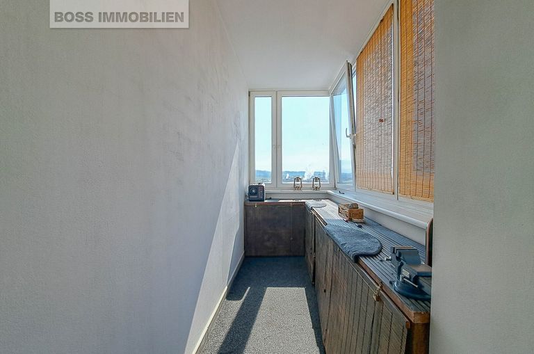 Zu Ihrer ausgesprochen ruhigen und hellen Wohnung mit Loggia fahren Sie bis ins 12. Stockwerk komfortabel mit einem der beiden Lifte.