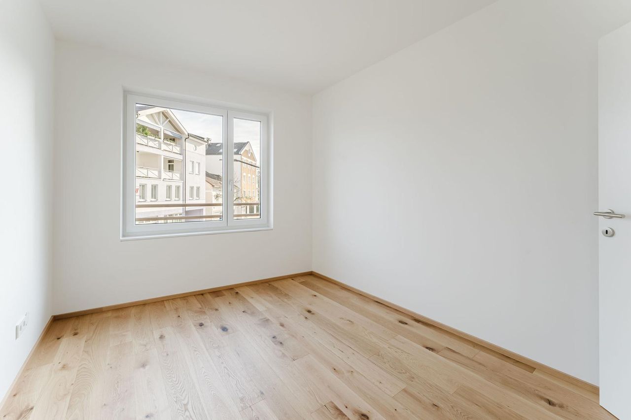 AUSGEZEICHNETE RAUMAUFTEILUNG - ERSTBEZUG Die ca. 72 m² große 3-Zimmer-Wohnung befindet sich im 1. Stock, ist ausgezeichnet aufgeteilt und bietet Ihnen viel Platz und zusätzlich eine ca. 6 m² große Loggia. Der offene aber trotzdem teils abgeteilte Küchenbereich, mit Abstellraum / Speis, wurde geschickt in den Wohnbereich integriert. Von der Loggia aus hat man eine schöne Sicht entlang der Doktor-Alois-Scherer-Straße in Richtung Wallfahrtskirche Maria Schöndorf. Mitten in Vöcklabruck am historischem Stadtzentrum. Dank der 2-geschossigen Tiefgarage ohne Parkplatzsorgen und mit einem vielseitigen kulinarischen Angebot. Der Stadtplatz ist in nur einer Minute zu erreichen. Die LAGE der Wohnung bietet daher alle Annehmlichkeiten...