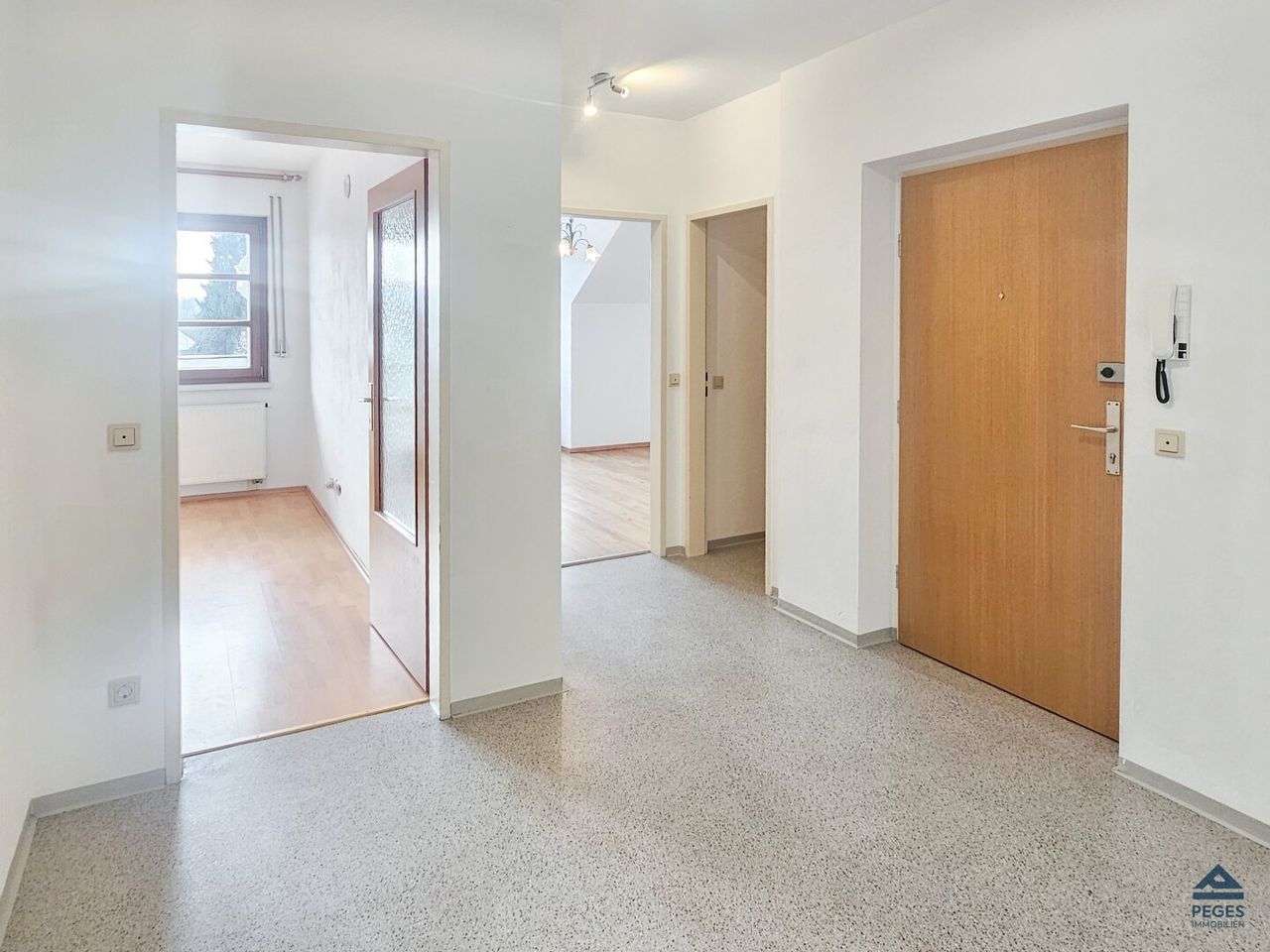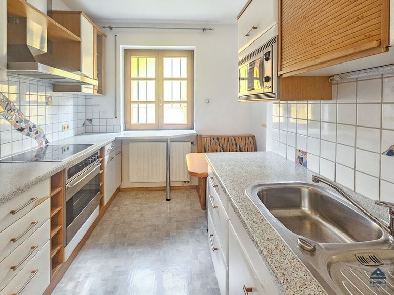 Die Wohnung mit einer Wohnfläche von ca. 77,40 m² zuzüglich Balkon mit ca. 4,63 m² liegt im 3. Stock und somit obersten Stockwerk des Hauses (ohne Lift) und befindet sich in einem ordentlichen Zustand – mit eingerichtetem Küchenbereich, Bad mit Badewanne und Waschmaschinenanschluss, etc. Im Wohnzimmer sorgt ein Pelletsofen für wohlige Wärme und gelangt man von hier aus auf den sonnigen Balkon mit Süd-West-Ausrichtung, mit Blick auf den Traunstein. Die Küche mit kleinem Sitzbereich ist vom Wohnzimmer getrennt und mit einer gepflegten Einbauküche (inkl. allen Geräten samt Geschirrspüler und Mikrowelle) ausgestattet. Schlaf- und Kinderzimmer verfügen über einen praktischem Schnitt. Auch eine gute räumliche Einteilung ist gegeben – sämtliche Räume sind vom Vorraum aus begehbar.