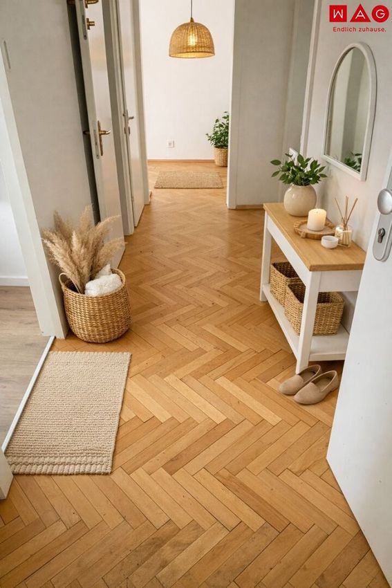 Die Wohnung ist leer und wird ohne Möbel vermietet; mögliche Einrichtungsvorschläge wurden nur zur Veranschaulichung visualisiert.